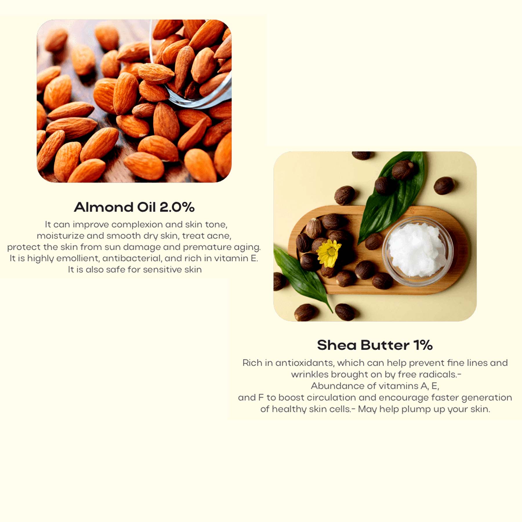 * Almond oil softens and prevents dryness and is Rich in Vitamin E and antioxidants.
