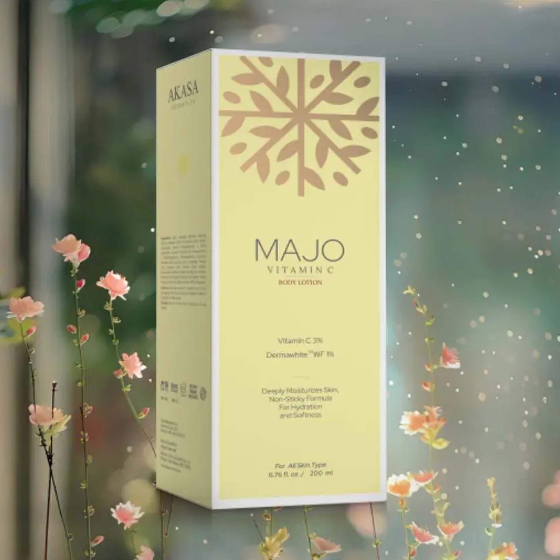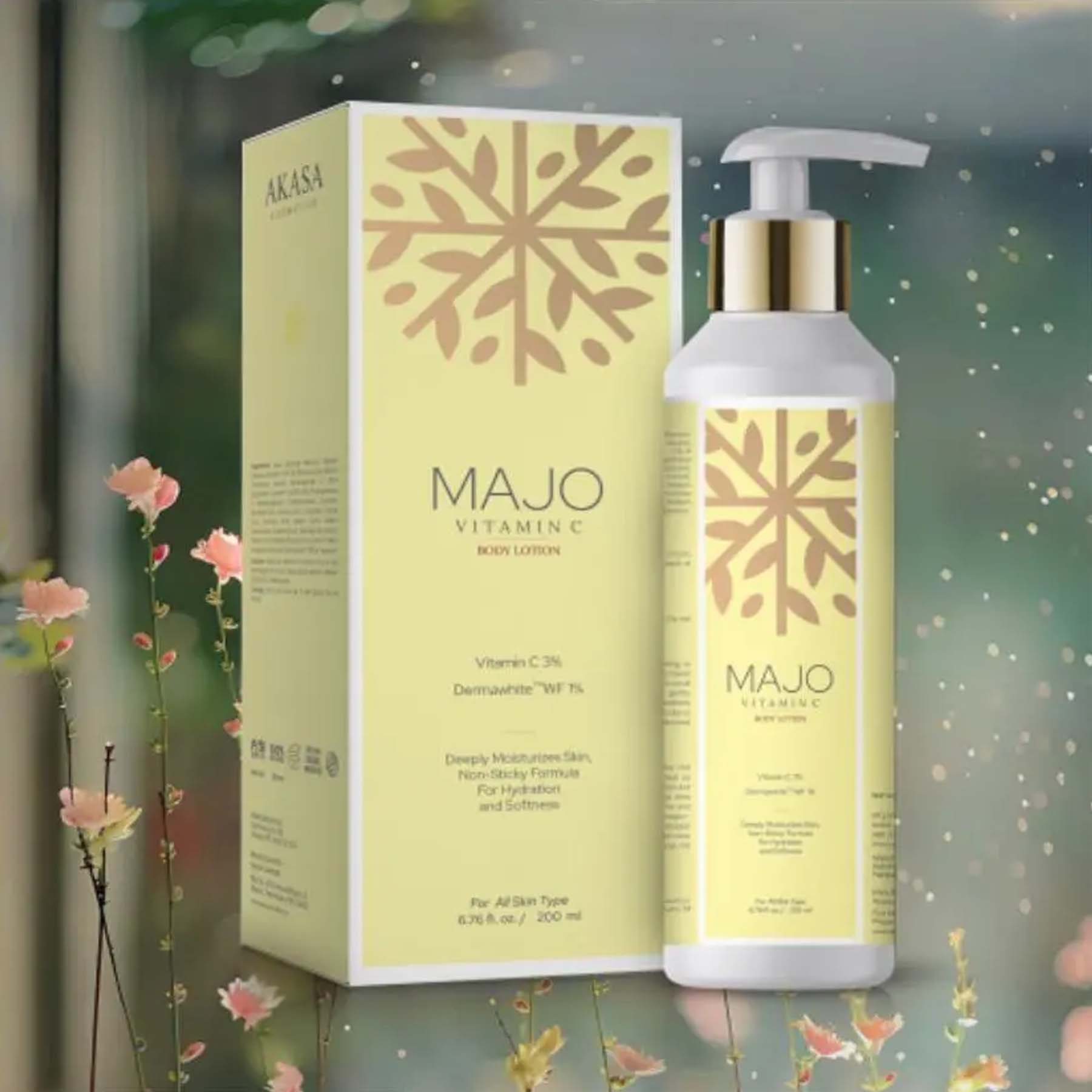 Majo: Vitamin c 3% + Dermawhite 1% Body Lotion is a revitalizing and fast-absorbing lotion formulated to nourish, hydrate, and brighten dull skin. It combines Vitamin C, known for its antioxidant and skin-brightening properties, and Derma white, a blend of natural active ingredients that help even out skin tone. this lotion works to restore radiance and clarity to your skin. Suitable for all skin types, it helps fade pigmentation, improve texture, and protect the skin from daily oxidative stress.