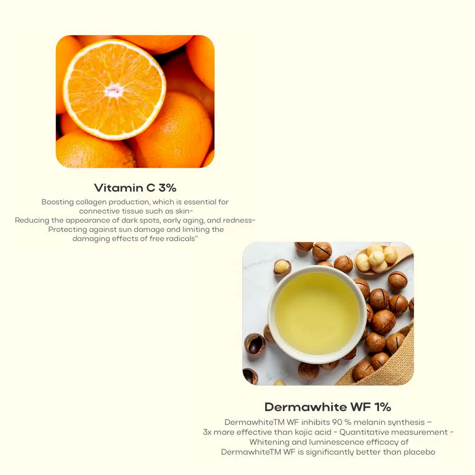 1. Vitamin C helps reduce dark spots, pigmentation, and dullness for radiant, glowing skin.
