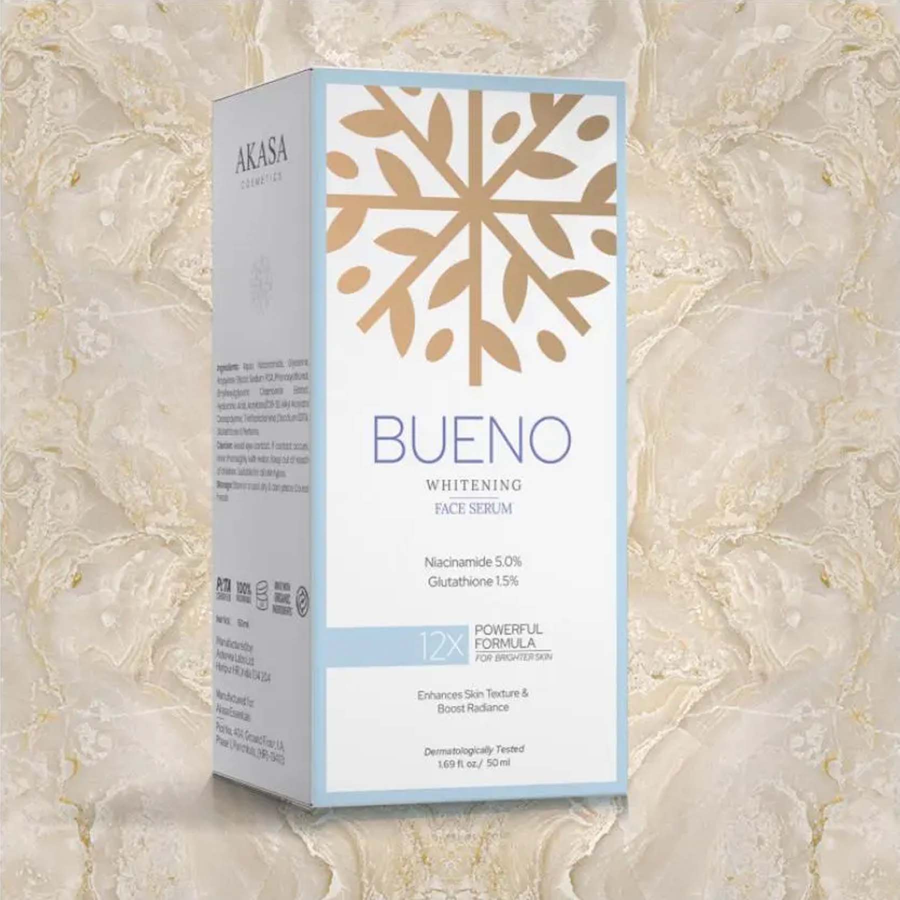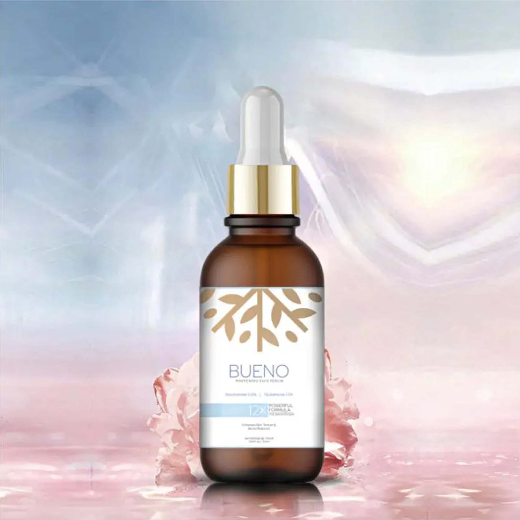 Bueno – Whitening Face Serum Powered by Niacinamide 5.0% and Glutathione 1.5%, it helps reduce pigmentation, even out complexion, and boost the skin’s natural radiance. This Whitening Face Serum is a lightweight, fast-absorbing formula crafted to brighten skin tone, fade dark spots, and improve overall clarity. The antioxidant-rich blend also supports skin repair, strengthens the barrier, and leaves your face looking smooth, luminous, and healthy. Suitable for all skin types, including sensitive skin