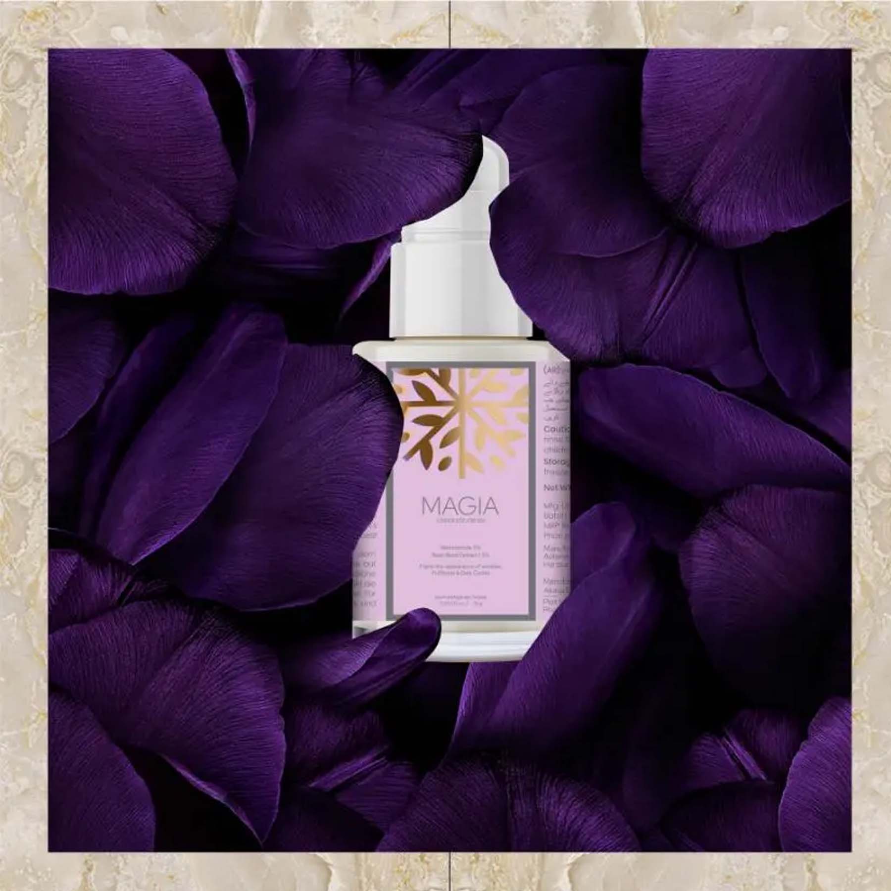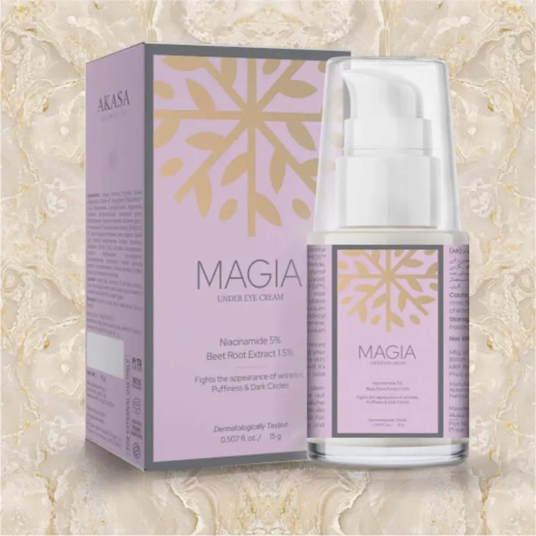 Magia Under Eye Cream is a gentle yet powerful formula designed to brighten, hydrate, and smooth the delicate under-eye area. Infused with Niacinamide 5% and Beetroot Extract 1.5%, it reduces the appearance of dark circles, puffiness, and fine lines while nourishing the skin for a refreshed, youthful look. Its lightweight, non-greasy texture absorbs quickly, making it ideal for daily use under makeup or on its own.